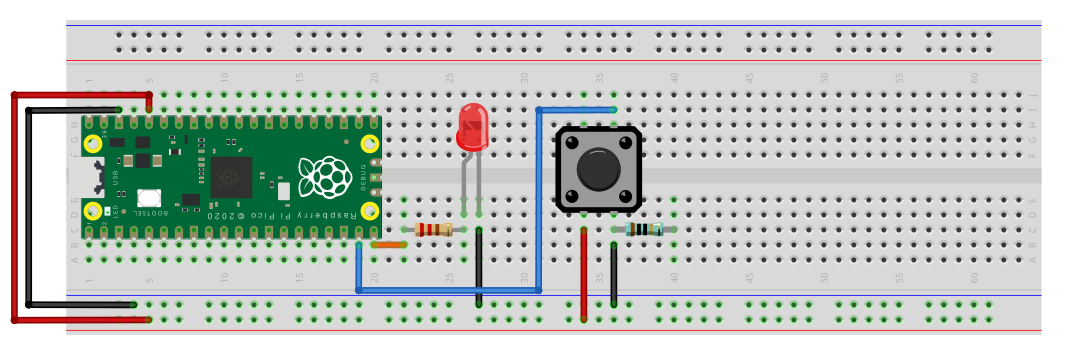 # 버튼은 14번 핀에 연결되어 있고, Raspberry Pi Pico의 3.3V 핀에 연결되어 있다.